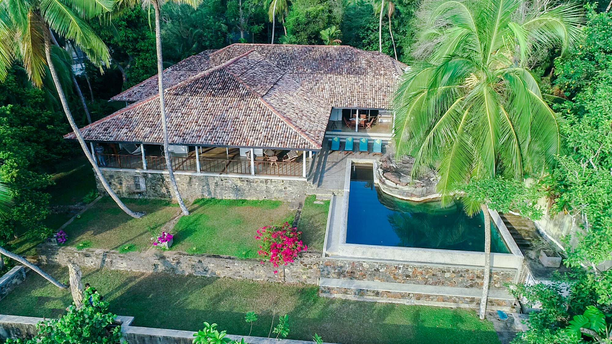 Deep in the heart of rural Southern Sri Lanka, yet just 30 minutes’ drive from the heritage city of Galle, Crocodile Rock Villa is a traditional Sri Lankan style country home – or ‘gama gedera’ off the small village of Kathaluwa. Set beside the scenic Koggala Lake, and surrounded by over an acre of natural habitat, the villa itself is built on high ground and bordered by terraced, landscaped gardens – giving you a choice of panoramic views over the lake and the forest as well as plenty of private, secluded hideouts to lose yourself away. The abundant bird and animal life around you will keep you fascinated whether you are a nature lover or not.